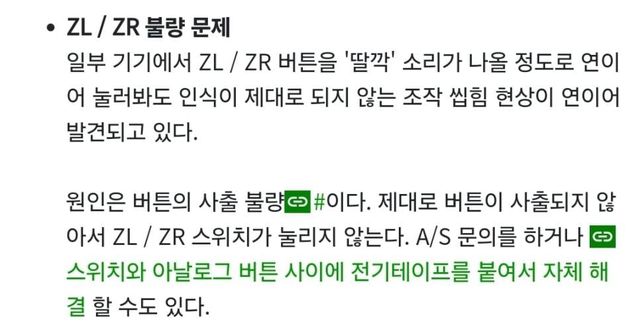 조이콘 사출에 문제가 있어서 ZL과 ZR 버튼이 안 먹히고 있다는 제보가 상당히 많이 올라오고 있음