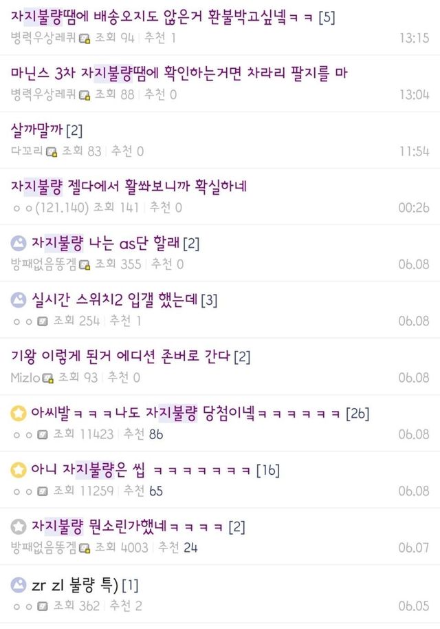그리고 닌갤에서는 이를 자지(zr zl) 불량이라 부르고 있는중
