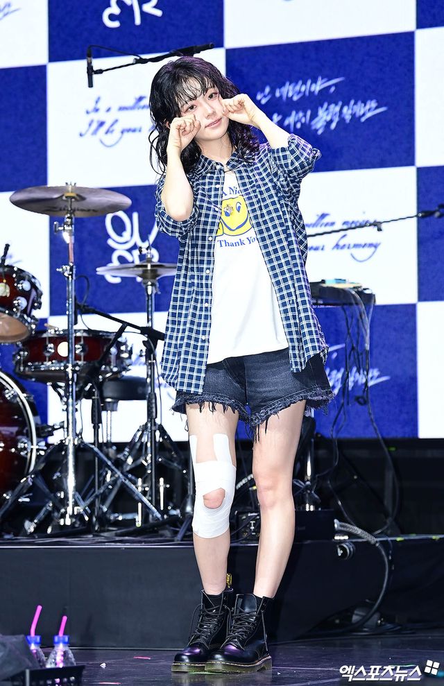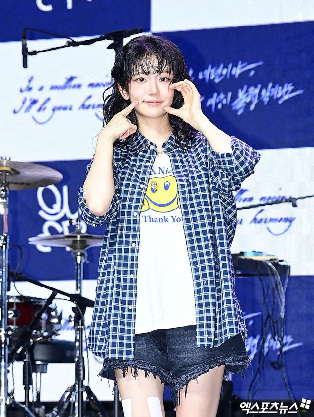이날 쇼케이스에 참석한 QWER 쵸단이 포토타임을 갖고 있다.