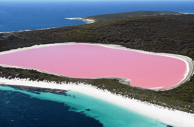 독특한 색상으로 세계적으로 사랑받는 호수는 또 있습니다. 호주의 ‘힐리어 호수’는 딸기우유를 연상케 하는 핑크빛 물색으로 유명합니다. 이 색상은 식물 플랑크톤이 자외선을 막기 위해 붉은 색소를 활성화하면서 생성됩니다.