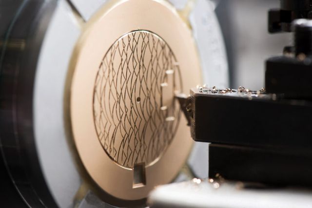 기하학 패턴을 금속 표면에 새겨 완성하는 기요셰는 원래 제복 버튼과 가구 등을 장식하던 기법으로, 아브라함-루이 브레게가 1786년 워치메이킹에 최초로 도입했다. 오늘날의 브레게 기요셰 워크숍은 숙련된 장인들이 그 명맥을 이어간다. 왼손으로는 도구를 사용하고, 오른손으로는 캐리지에 고정된 끌을 섬세하게 움직여 만들어내는 기요셰는 시계의 표면을 마모로부터 보호하고 다이얼의 가독성을 높이는 역할을 한다. 하우스는 수년에 걸쳐 빈티지 엔진 터닝 도구를 사 모았을 뿐 아니라, 정밀성을 높이기 위해 기요셰 기계를 자체적으로 제작하며 기요셰를 향한 끝없는 경의와 애정을 표한다.