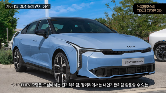 예상도에서 K5(DL4)는 내연기관과 전동화 파워트레인 사이의 과도기적 위치를 보여주고 있다. 디자인 요소는 전통적인 차량 팬과 미래지향적 소비자 모두에게 어필할 수 있도록 구성됐다.