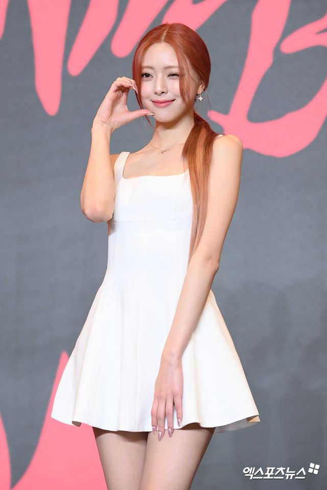 이날 기자간담회에 참석한 있지 유나가 포토타임을 갖고 있다.