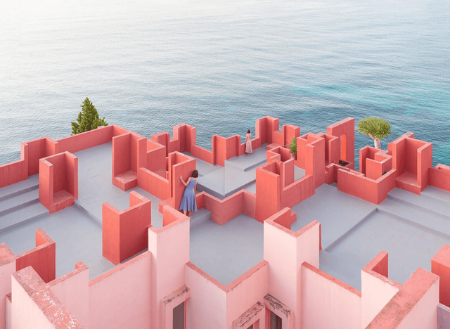 라 무라야 로하는 스페인 칼페에 위치한, 마치 동화책에서 튀어나온 듯한 특별한 건축물입니다. 리카르도 보필(Ricardo Bofill)이 1968년에 설계해 1973년에 완공한 이 아파트는 색감과 구조에서 평범함을 벗어난 독특함을 자랑합니다. 이곳의 붉고 파란, 분홍빛의 선명한 색채와 미로 같은 계단은 몽환적이면서도 초현실적인 분위기를 만들어냅니다. 이 때문에 많은 인스타그램 사용자들 사이에서 ‘핫플’로 유명해졌습니다.