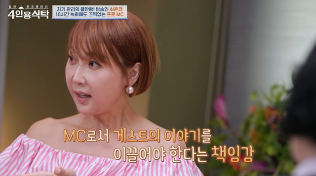 9일 방송된 ‘절친 토큐멘터리 4인용식탁’에는 방송인 최은경이 절친인 한의사 이경제, 김영희, 김새롬을 초대해 이야기를 나눴다.