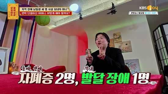 9일 방송된 KBS Joy ‘무엇이든 물어보살’ 319회에는 지적장애를 가진 세 명의 남동생을 시설에 보내자고 제안한 뒤 어머니와 연락이 끊겼다는 사연이 공개됐다.