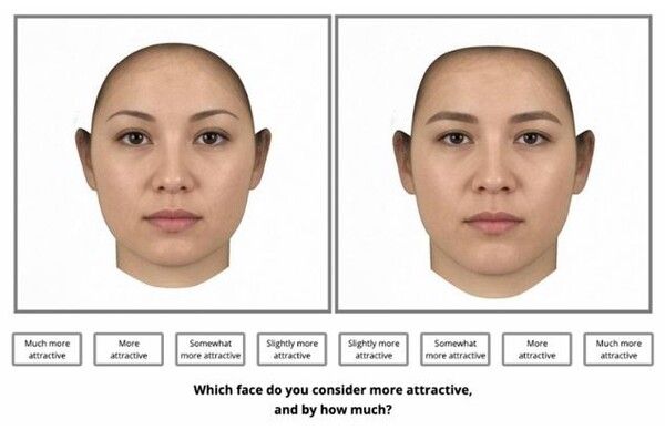 그 결과 성별과 성적 지향, 인종과 관계없이 대부분의 참가자가 여성적인 얼굴을 더 선호하는 경향을 보였다. 여성적인 얼굴은 좁고 작은 턱, 높은 눈썹 아치, 둥글게 돌출된 이마, 부드러운 턱선과 볼 곡선 등을 특징으로 하며, 반대로 남성적인 얼굴은 넓고 각진 턱, 짙은 눈썹과 튀어나온 눈썹뼈, 크고 뾰족한 코, 넓은 이마 등의 특징으로 정의됐다.