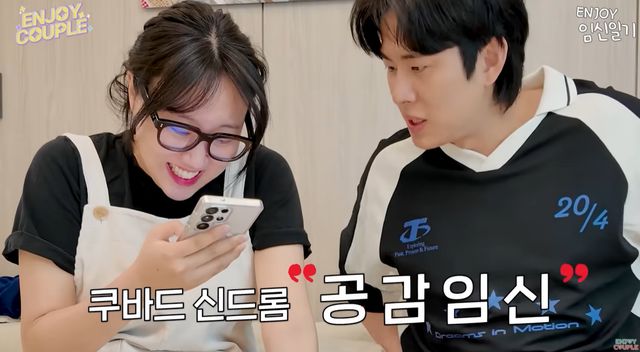 8일 유튜브 채널 '엔조이커플'에는 '비상사태 공감임신하고 입덧시작한 극 F남편! 쿠바드 증후군이요? 임신 8주차 husband with morning sickness [임신일기 5화]'라는 제목의 영상이 업로드됐다.