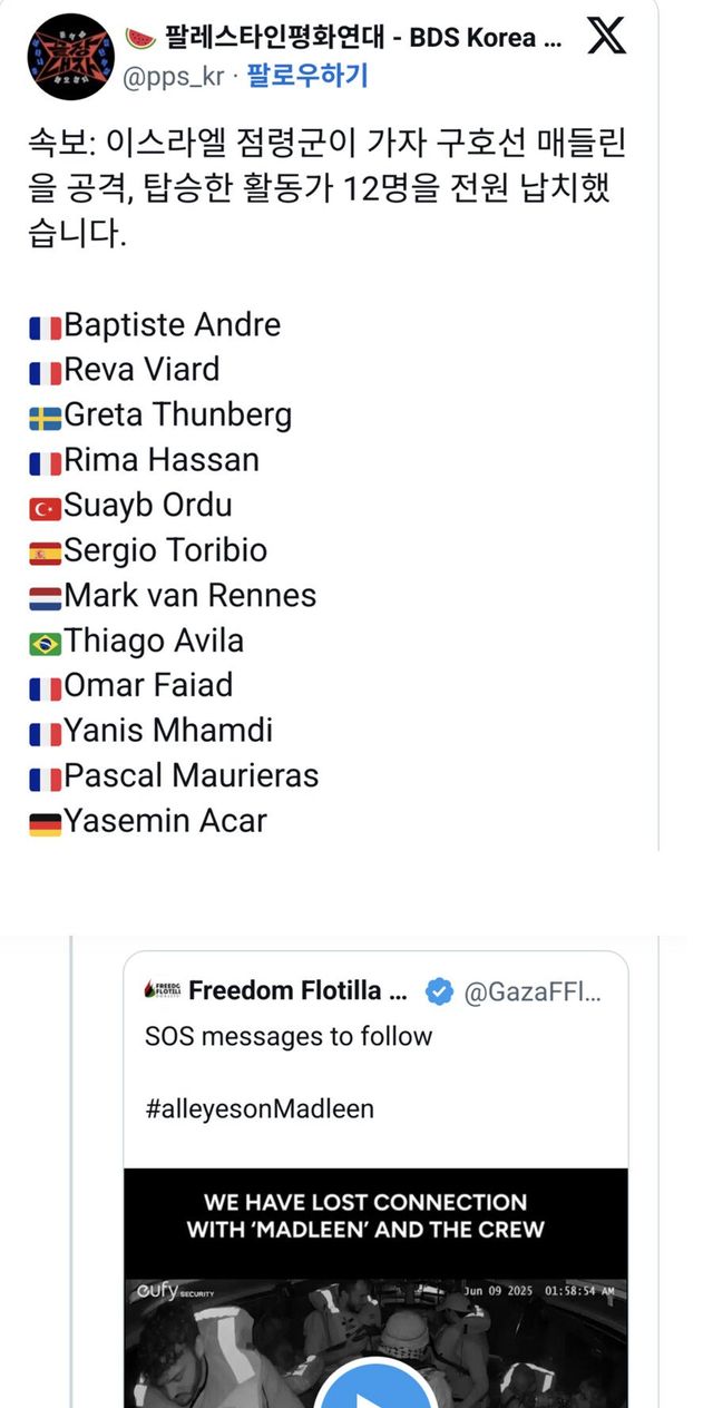이스라엘군들이 드론과 화학물질 뿌리면서 배 포위하고