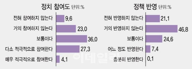◇정치적 효능감 낮아…10명 중 6명 “요구 반영 안돼”