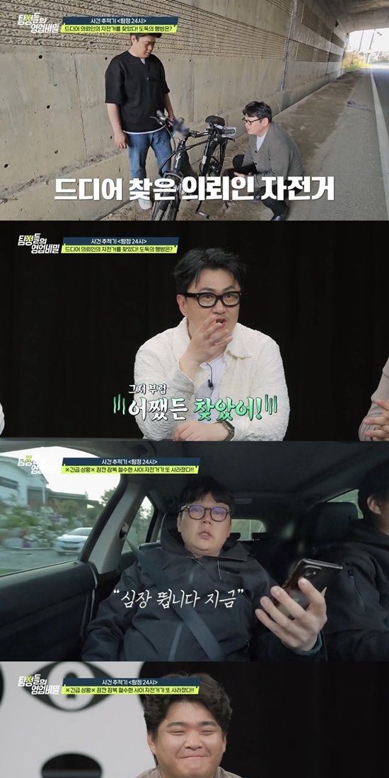 지난 9일 방송된 채널A ‘탐정들의 영업비밀’ 속 ‘탐정 24시’에서는 도둑맞았던 100만 원 상당의 전기 자전거가 의뢰인에게 돌아왔다. 올빼미 탐정단은 도난당한 자전거에 부착된 GPS 기록과 CCTV를 단서로 탐문에 나섰다. 범인의 마지막 종착지 주변을 탐문하던 중, 동네 주민으로부터 “굴다리 밑에 며칠째 자전거가 세워져있다”는 제보를 입수했다. 실제로 주민이 얘기한 장소에서 의뢰인의 자전거가 발견됐지만, 범인의 것으로 예상되는 새로운 자물쇠가 채워져있었다. 이에 올빼미 탐정단은 “범인이 자전거를 찾으러 다시 올 것”이라고 판단, 즉시 잠복에 들어갔다. 과거 자전거 도난으로 1100만 원의 피해를 입었던 데프콘은 “어쨌든 찾았으니 의뢰인이 너무 부럽다”라고 말해 짠내를 폭발시켰다.