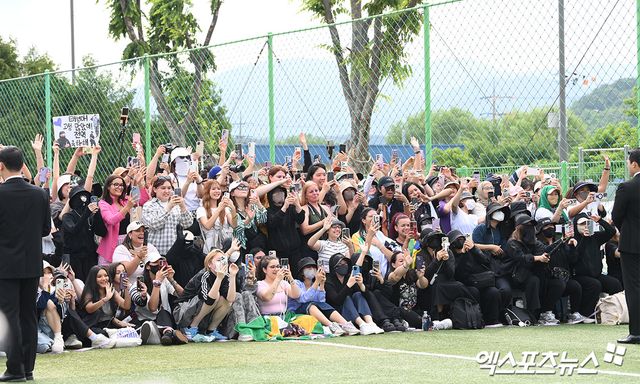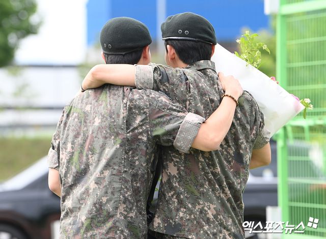 10일 오전 강원도 춘천시 신북읍체육공원에서 열린 전역식에는 이른 아침부터 글로벌 팬들과 취재진들이 몰려 현장을 가득 메웠다. 팬들은 새벽부터 자리를 잡고 기다리며, 오랜 군백기 끝에 돌아오는 두 사람을 뜨겁게 환영했다.