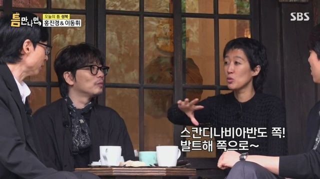 홍진경은 사업차 해외에 자주 나간다고 말하며 “계속 북유럽 왔다 갔다 한다. 스칸디나비아반도, 발트해 쪽이 만두 붐이다”라며 “비즈니스가 좀 어려웠다. 제가 생소하고, 북유럽 특유의 호탕한 기질이 있더라. 해적?”이라고 했다. 이를 들은 유재석은 “호탕하면 비즈니스가 쉬운 거 아니냐”라고 의아해했고, 이동휘 역시 “바이킹”이라고 정정하며 “사업을 어떻게 하는 거냐”라고 말하며 웃음이 터졌다.