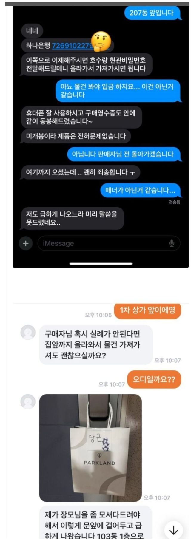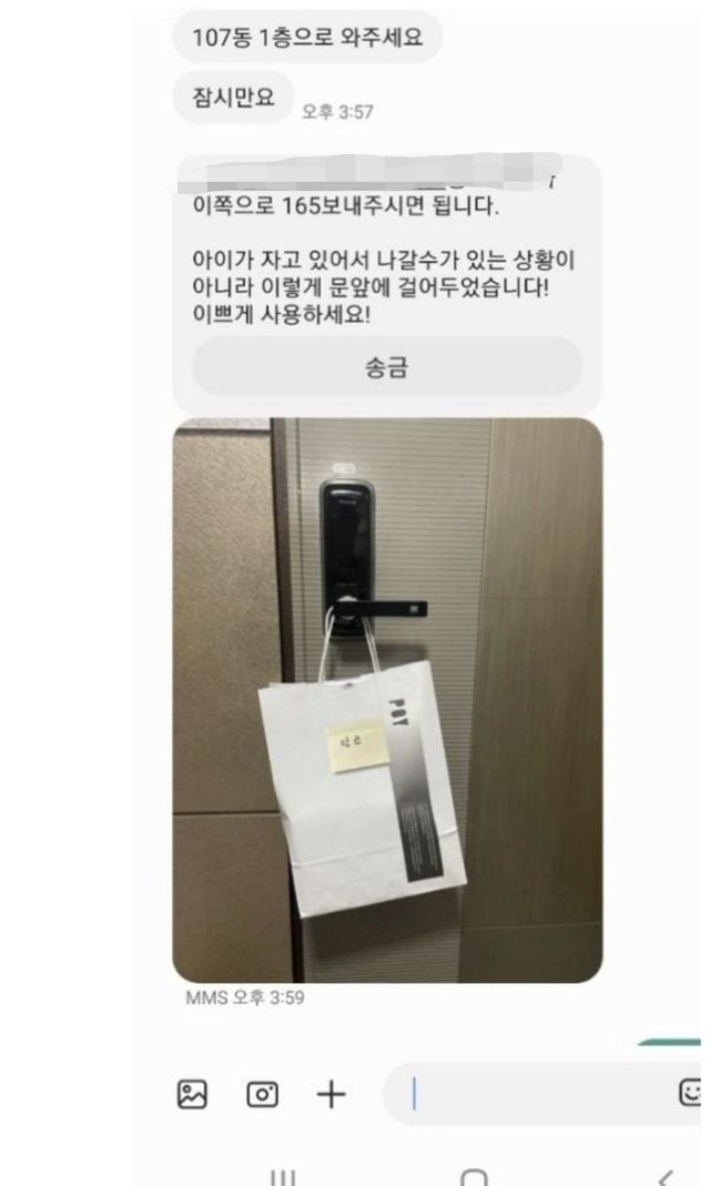 문에 걸어두고 나왔으니 일단 돈부터 보내세요.