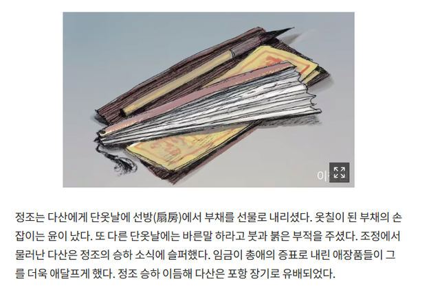특히 저 부채는 정약용이 특히 마음에 들었는지 정조 사후 유배지에서