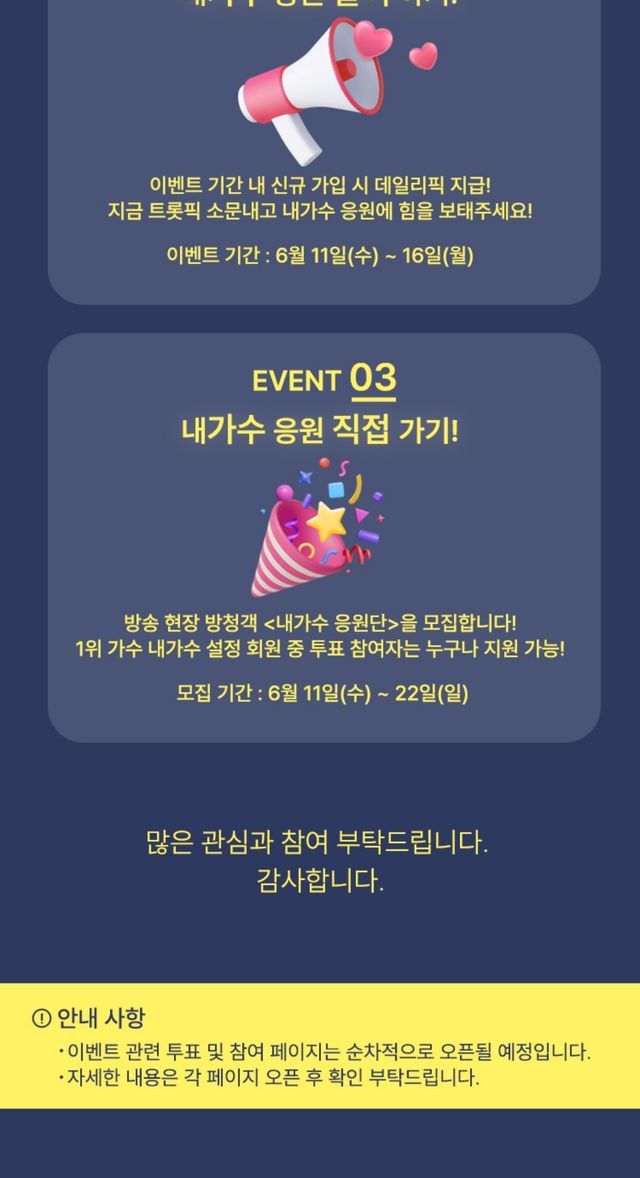 투표 및 이벤트 관련 페이지는 6월 11일 ‘트롯픽’ 공식 사이트에서 순차적으로 확인할 수 있다.