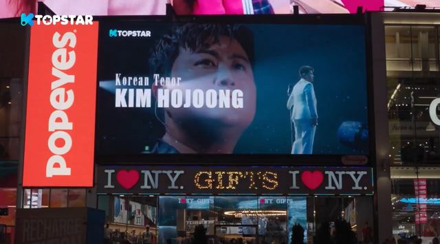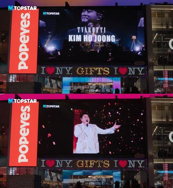 뉴욕의 상징으로도 불리는 해당 전광판에는 김호중을 뜻하는 '코리안 테너', '트로바티' 등 별칭이 김호중의 무대와 함께 펼쳐져 의미를 더했다.