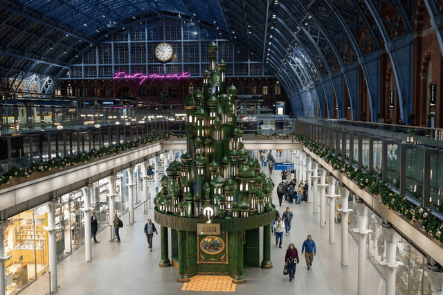 영국 매체 시크릿 런던에 의하면, 올해 세인트 판크라스 역은 유니버설 픽처스와 함께 ‘위키드’의 에메랄드 시티를 주제로 크리스마스트리를 설치했습니다. 에메랄드 궁전을 연상시키는 이 트리는 100개의 탑이 포함된 환상적인 구조로, 다시 한 번 런던을 방문한 이들의 발걸음을 멈추게 합니다.