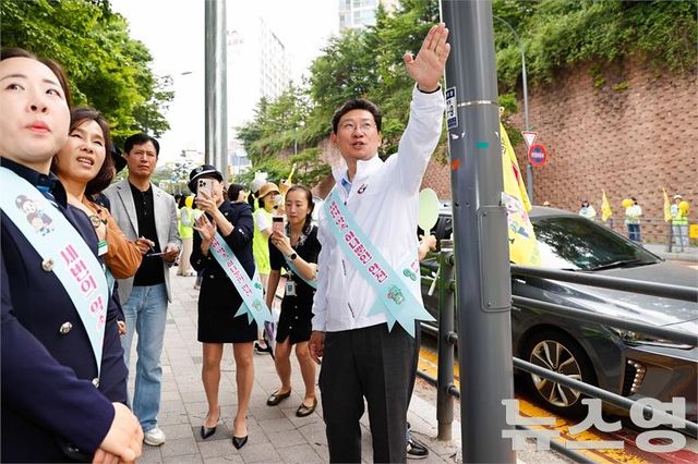 (뉴스영 이현정 기자) 이상일 용인특례시장은 10일 오전 기흥구 마북초등학교를 방문해 경찰관과 학부모, 학교 관계자를 함께 학생들의 안전한 통학 환경 조성을 위한 캠페인을 벌였다.