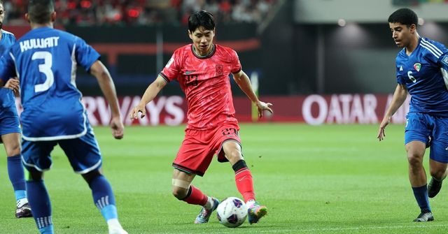 10일 오후 서울 마포구 상암동 서울월드컵경기장에서 열린 2026 국제축구연맹(FIFA) 북중미 월드컵 아시아 3차 예선 B조 10차전 대한민국과 쿠웨이트의 경기, 전진우가 돌파하고 있다 / 뉴스1