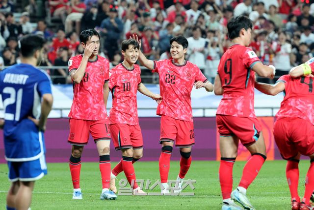 홍명보 감독이 지휘하는 대표팀은 10일 오후 8시 서울월드컵경기장에서 열린 2026 국제축구연맹(FIFA) 북중미 월드컵 아시아 3차 예선 B조 최종전에서 쿠웨이트를 4-0으로 대파했다. 전진우의 선제골을 시작으로 이강인, 오현규, 이재성이 릴레이 골을 터뜨렸다. 지난 6일 이라크와의 9차전에서 11회 연속 월드컵 진출을 확정한 대표팀은 이날 안방에서 화려한 마침표를 찍었다.