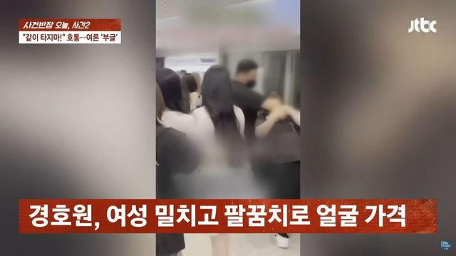 경호원은 여성에게 “OO어? 뭐 하는 거야!”라며 격한 반응을 보였다. 여성은 “나도 가야 한다. 탑승권이 있다”라고 항변했다. 이에 경호원은 “어쩌라고!”라고 화내며 “왜 멤버를 치느냐?”라고 큰소리쳤다.