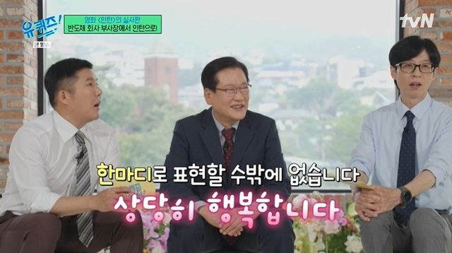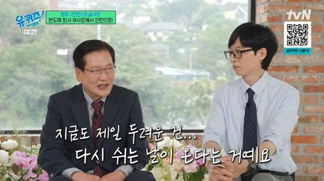 그는 “퇴직하고 1~2개월은 방황을 많이 했다. 일을 새로 찾지 않으면 살 수 없을 것 같단 생각도 들었다”라며 힘들었던 시간을 떠올렸다. 할 일 없이 집에서 노는 게 제일 힘들다. 제일 두려운 게 다시 쉬는 날이 온다는 것”이라고 고백했다. 이를 듣던 유재석은 “어렸을 때부터 아버지는 늘 출근하셨다. 근데 어느 날 아버지가 퇴임하시고 휴일이 아닌데 거실에 앉아 계시더라. 너무 낯설었다. 지금 생각해 보니 아버지도 뭘 해야 할지 고민이 얼마나 많으셨을까”라고 공감했다.