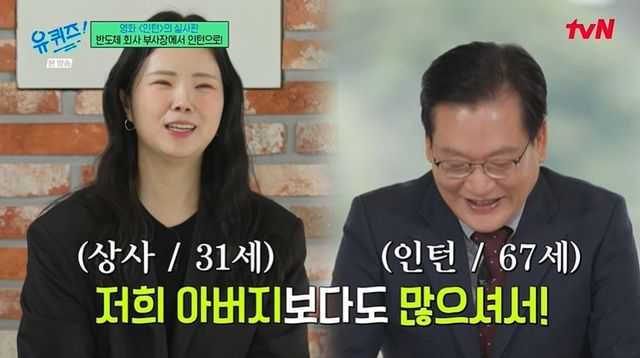 오창규는 출근 시간에 대해 “시니어 인턴들은 습관이 남아 있어서 그런지 9시 전에 출근해서 6시에 퇴근한다. 다른 직원들은 11시쯤 출근해서 다음 날까지 퇴근 못 하고 그대로 있더라”고 밝혔다. 이에 상사는 “시니어는 7시 반에 오는 분들도 계신다. 처음엔 부담스럽기도 했다”라고 솔직히 말했다.