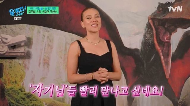스칼릿 조핸슨은 개봉을 앞둔 영화 ‘쥬라기 월드: 새로운 시작’을 언급하며 7월 내한 소식을 전했다. 스칼릿 조핸슨은 “‘자기님’ 빨리 만나고 싶다”라면서 ‘유퀴즈’ 출연을 예고했다.