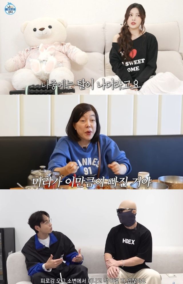 이어 "단식으로 뺐으니까 그냥 한 끼 먹을 때마다 1kg씩 쪘다. 일주일 만에 몸무게가 원상태로 돌아왔다"며 "샤워하는데 머리가 이만큼이 빠진 거다"고 탈모 부작용을 털어놨다.