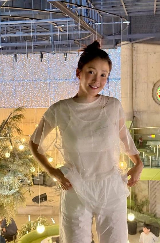 사진 속 이시영은 시스루 소재의 흰색 상의와 팬츠를 매치한 여름 스타일링을 선보였다.