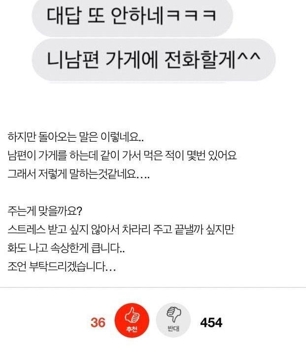 엄마가 아내가 너무 연락 많이해서 차단했대