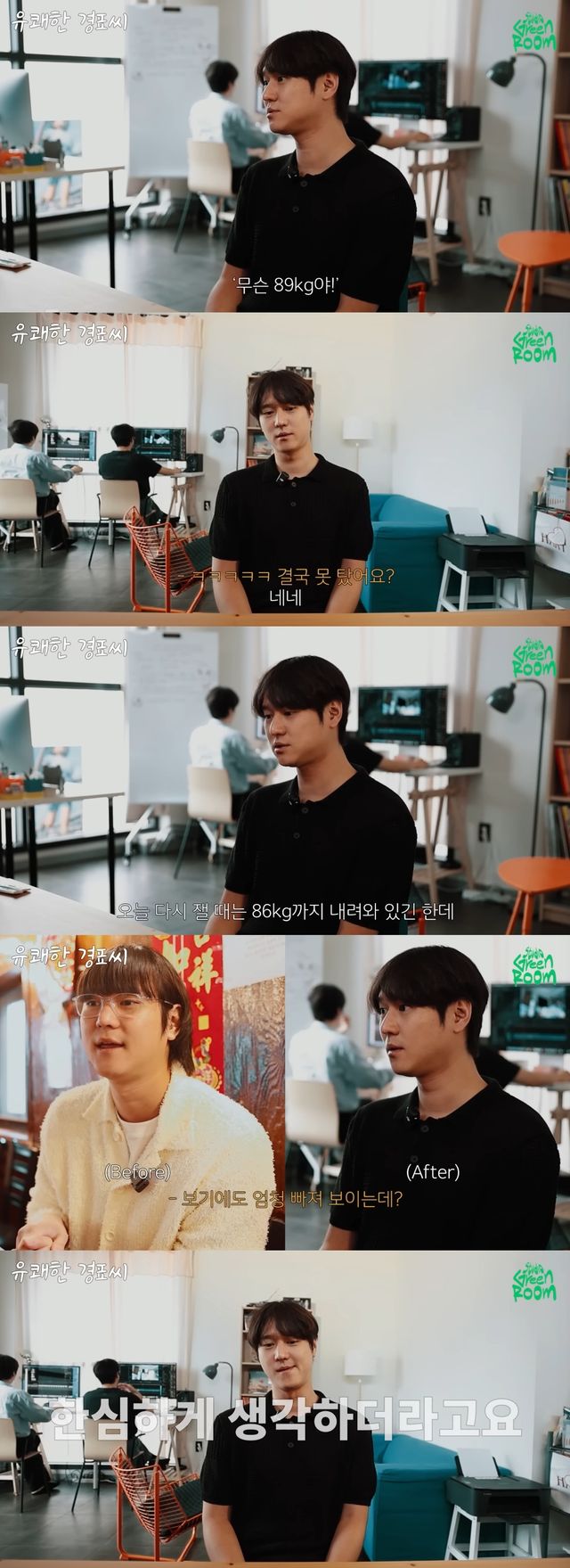 이어 그는 "'나 다이어트 하고 왔는데 무슨 89kg냐 했는데 91kg가 나왔다. 결국 실패했다. 못 탔다"고 고백하며 "다행인 건 오늘 다시 쟀는데 86kg까지 내려와있더라"고 이야기했다.