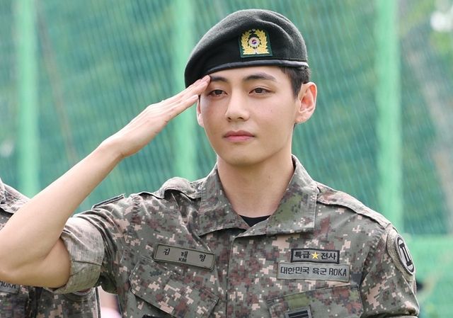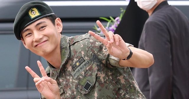 강원도 춘천 모 부대에서 전역하는 뷔 / 뉴스1