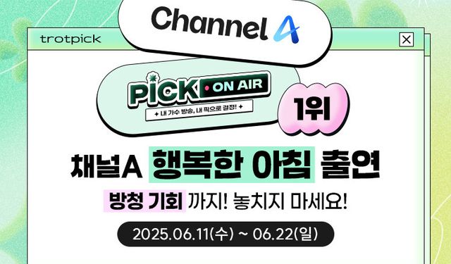 트롯 문화를 사랑하는 사람들을 응원하는 서비스 ‘트롯픽(trotpick)’ 측은 10일 “‘채널A [행복한 아침]에서 만나고 싶은 가수는?’을 주제로 이벤트를 연다”라며 “내가 좋아하는 가수를 방송에 출연시키고 직접 방청까지 할 수 있는 절호의 기회를 놓치지 말아달라”라고 알렸다.