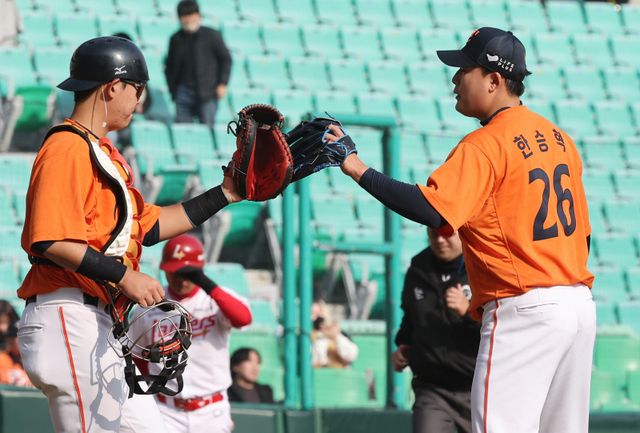 허인서는 11일 충남 서산에서 열린 두산 베어스와 퓨처스리그 경기에 5번 지명 타자로 선발 출전해 2회 말 상대 선발 김민규의 초구를 공략해 솔로 홈런(비거리 115m)을 뽑았다. 이로써 4연타석 홈런을 기록했다.