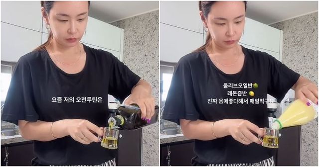 그는 최근 올리브오일과 레몬즙을 1대 1로 섞어 마시는 루틴을 SNS에 공개하며 "혈당 스파이크 방지와 다이어트에 효과가 있다"고 소개했다.