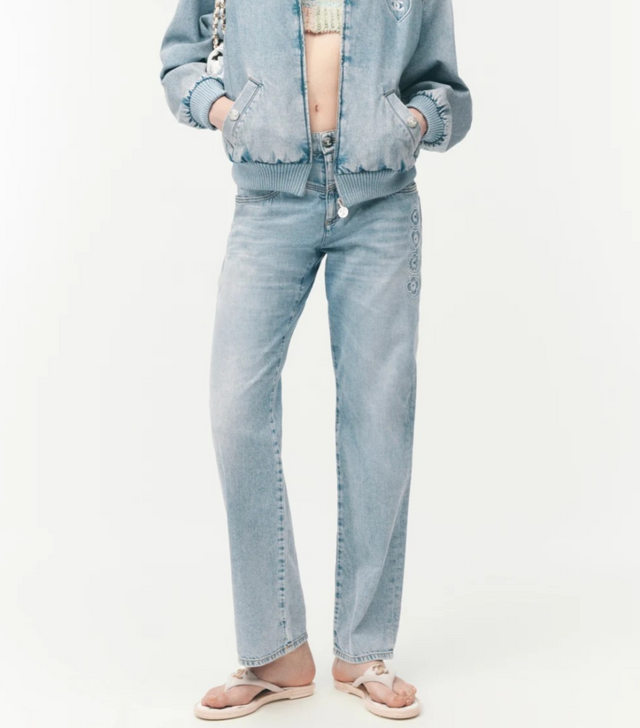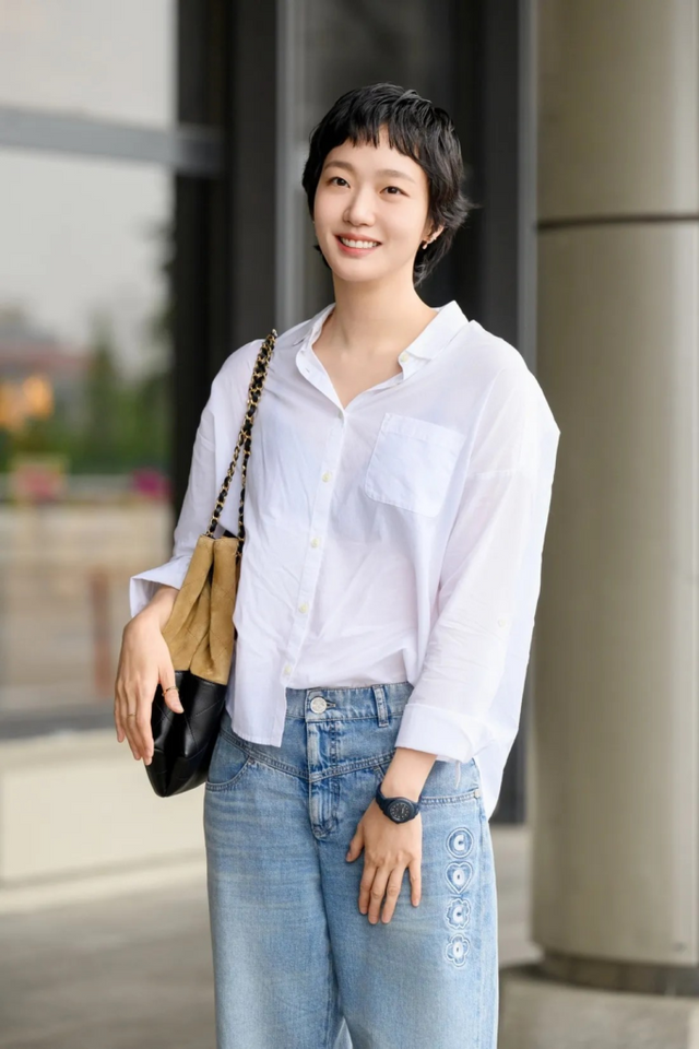 김고은이 착용한 데님 팬츠는 2025 코코 비치 컬렉션의 제품으로, 캐주얼한 무드 속에서도 샤넬 특유의 섬세한 실루엣이 돋보이는 아이템입니다. 시원한 워싱 컬러와 러블리한 디테일이 조화를 이루며, 데일리 룩은 물론 여행지에서의 스타일링에도 탁월한 선택이죠.