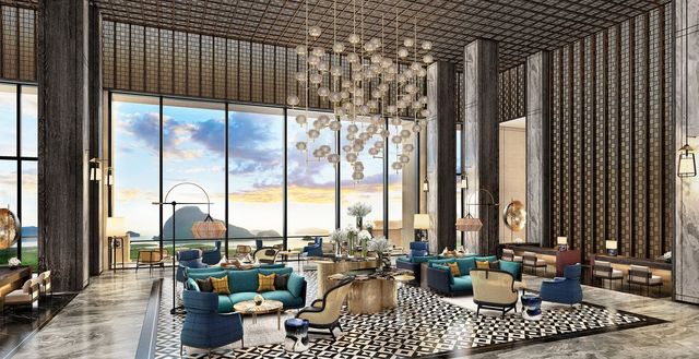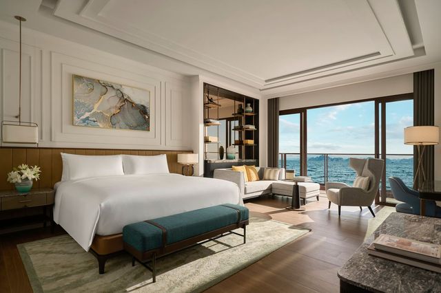 하롱베이의 신비로운 자연과 용의 전설은 리조트 곳곳에 스며 있다. 세계적 설계사무소 WATG와 태국 디자인 회사 P49Deesign이 협업해 만든 건축과 인테리어는 바다·섬·만·육지의 조화를 현대적으로 풀어낸다. 전통 바구니배를 닮은 로비, 진주와 물결에서 영감 받은 텍스처, 황동 디테일로 장식된 객실 인테리어까지. 그 자체로 하나의 감각적 공간 경험이 된다.