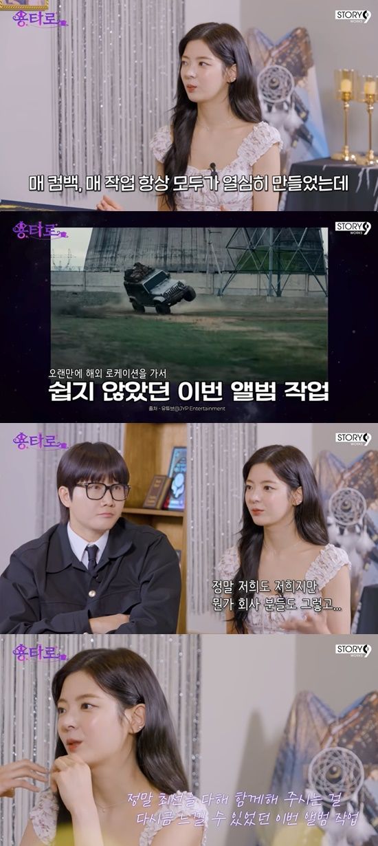 데뷔 7년차를 맞은 리아는 "사실 매 컴백, 매 작업 항상 모두가 열심히 만드는데, 아까 설명해주실 때 놀랐던 게 있다"며 "이번 앨범, 뮤비를 찍고 준비하는 과정에 있어서 오랜만에 해외 로케이션을 가서 힘들었는데, 그러면서 더 느낀 게 있다"고 말했다.