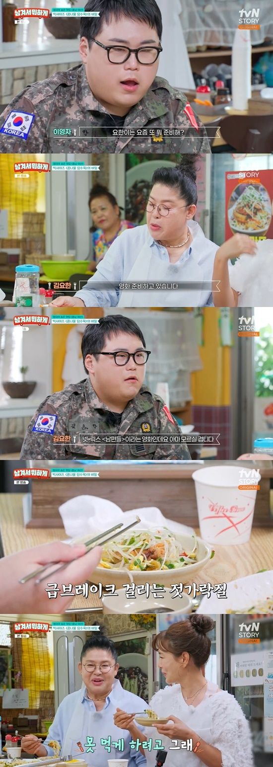 가게의 시그니처 메뉴인 콩나물탕수육을 주문하고 식사를 하던 중 이영자는 김요한에게 "요한이는 요즘 뭐 준비해?"라고 물었고, 김요한은 "영화 하나 준비하고 있다. 넷플릭스 오리지널 영화 '남편들'이라는 작품인데, 아마 모르실 것"이라고 답했다.