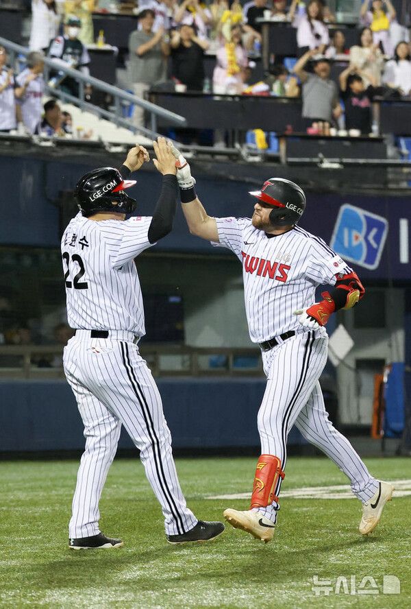 곧바로 타석에 들어선 오스틴도 상대 불펜 이로운의 시속 149㎞의 직구를 잡아당겨 좌측 담장을 훌쩍 넘는 투런포를 작렬해 점수 차를 벌리며 승리에 쐐기를 박았다.