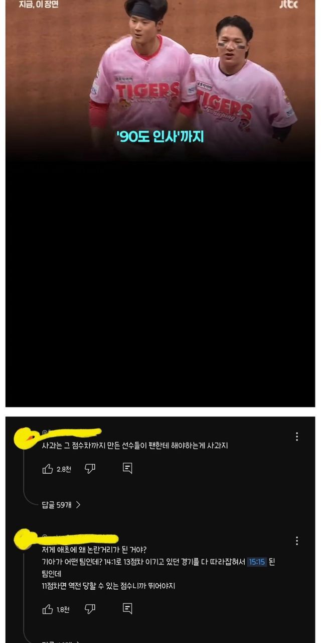 유튜브 댓글 난리난 한국프로야구의 최근 불문율 사건.jpg