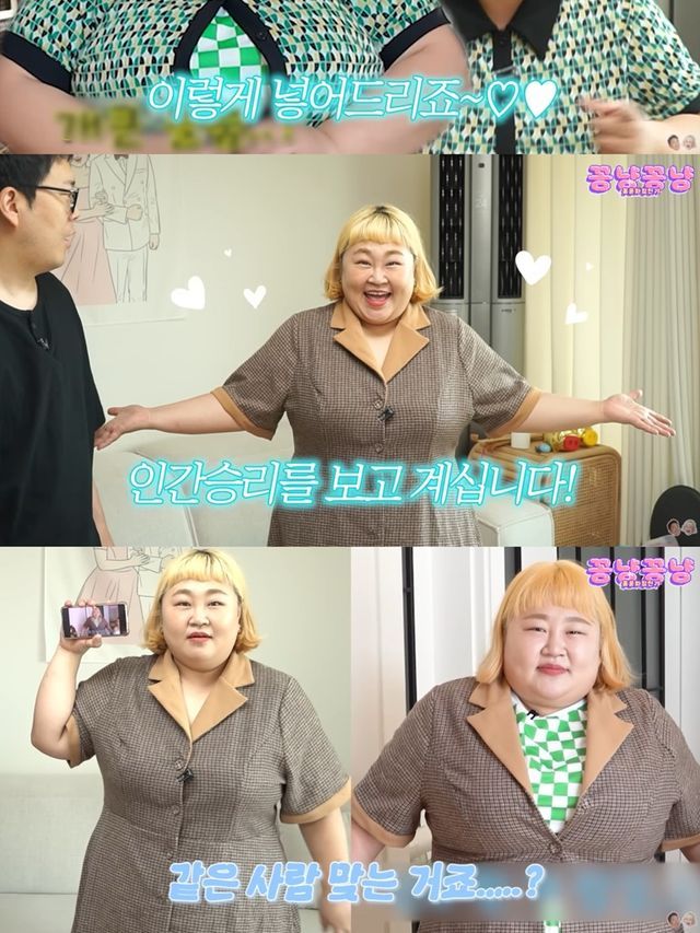 이어 '빠지고 있는 거냐'는 댓글을 읽은 홍윤화는 "저도 티가 안 났다. 심지어 20kg가 빠진 상황에서도 모르겠다고 했는데 저도 보며 놀라고 있다"고 전했다.