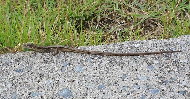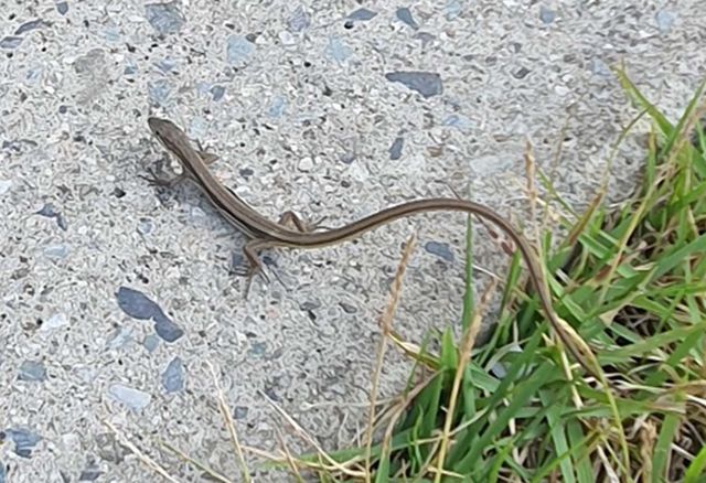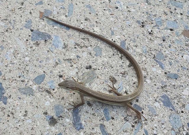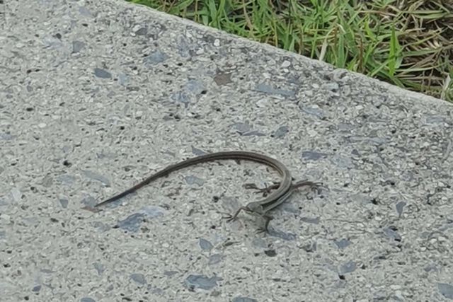 12일 오전 11시 광주 광산구의 한 사진 스튜디오 앞에서 줄장지뱀이 발견됐다. 셋째 백일 사진을 촬영하려고 스튜디오를 찾은 한 여성이 스튜디오 입구에서 일광욕을 즐기는 도마뱀을 보고 깜짝 놀라 사진을 촬영해 위키트리에 제보했다.