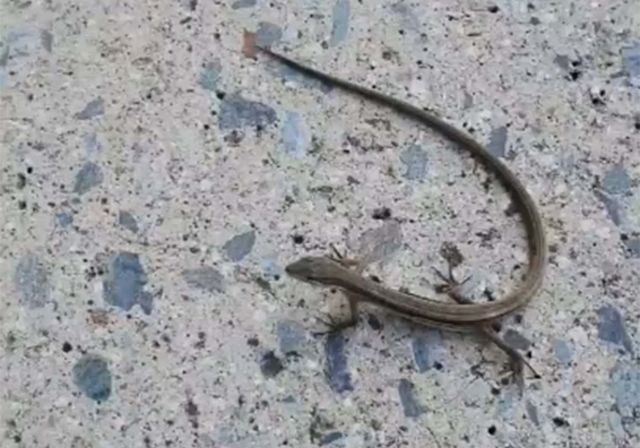 줄장지뱀은 다른 도마뱀처럼 위협을 받으면 꼬리를 자르고 도망간다.