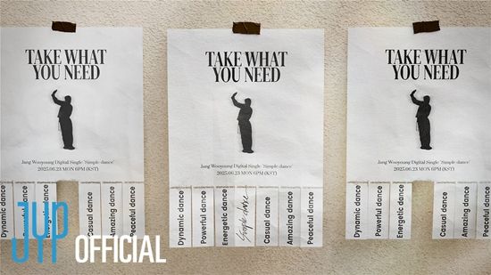 무빙 포스터 속 전단지에는 'TAKE WHAT YOU NEED'라는 문구와 함께 다이내믹 댄스, 파워풀 댄스, 에너제틱 댄스, 캐주얼 댄스, 어메이징 댄스, 피스풀 댄스 등이 선택지로 자리하고 있다. 그 가운데 많은 이들의 선택을 받은 '심플 댄스'가 유독 눈길을 끈다. '타고난 춤꾼'이자 '퍼포먼스 장인'으로 정평이 난 장우영이 선보일 '심플 댄스'를 향한 호기심이 커진다.