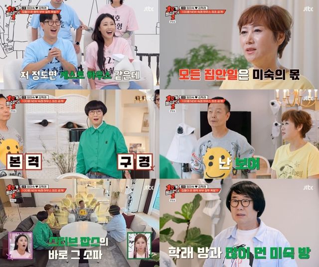 이날 두 달째 냉전 중인 개그맨 부부 김학래, 임미숙은 100평 하우스로 이사한 근황을 알렸다. 임미숙은 “공황장애가 심해서 바깥이 확 트인 곳으로 이사를 왔다”고 이유를 전했다. 하지만 럭셔리한 집에서도 임미숙과 김학래 사이에 한기가 맴돌아 모두를 긴장시켰다. 최근 집에 누수 문제가 터졌지만 코미디 협회 업무만 신경 쓰는 남편이 갈등의 원인이 된 것.