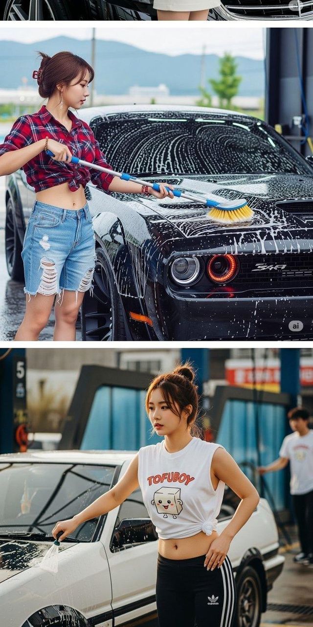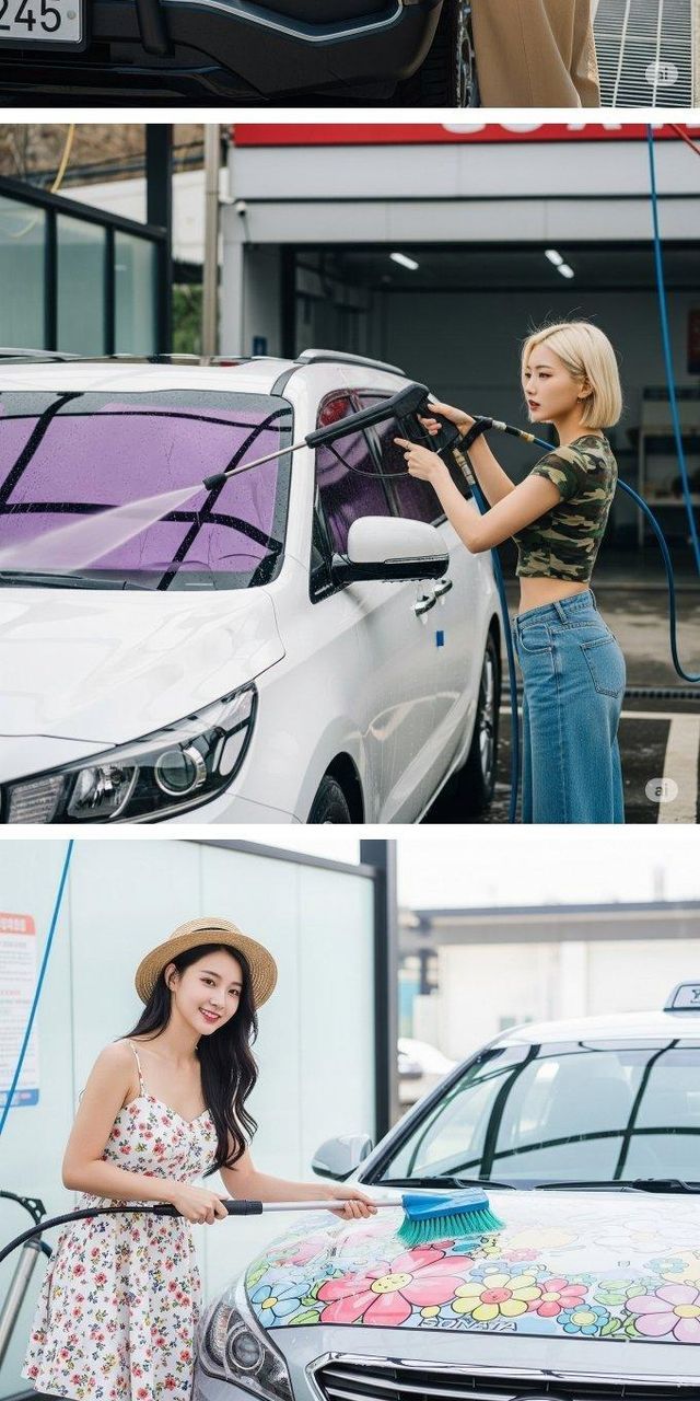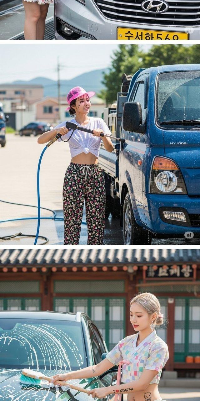 세차하는 한국 여성 그려달랬는데 거의 실사같네 ㄷㄷㄷ
