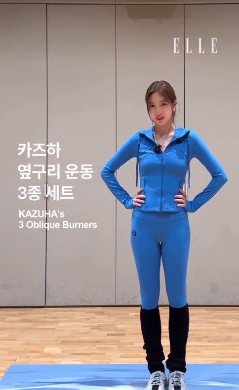 11일 매거진 엘르의 공식 SNS에는 카즈하와 함께하는 옆구리 운동 3종 세트 영상이 소개됐다.